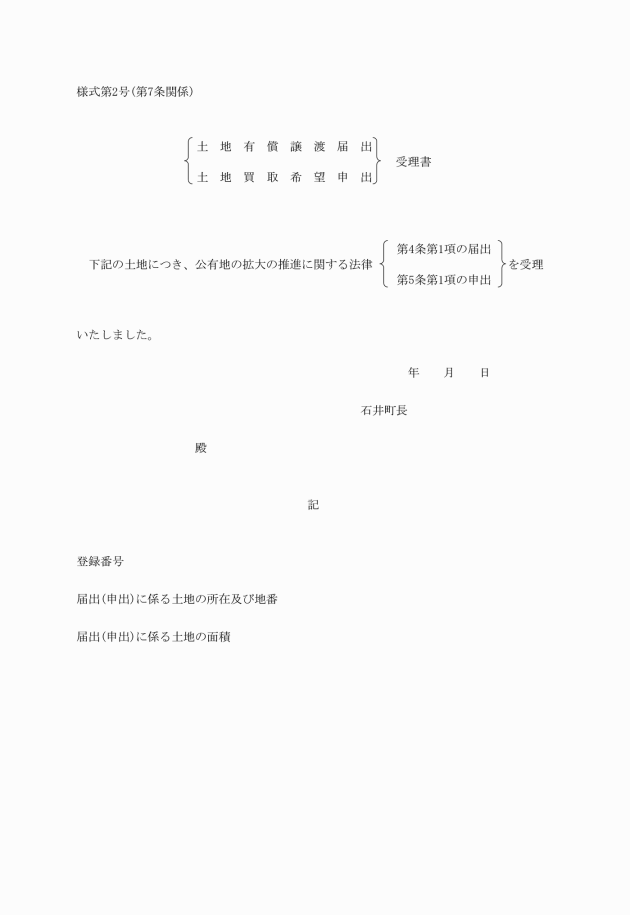 ○公有地の拡大の推進に関する法律第2章に係る石井町事務処理要綱